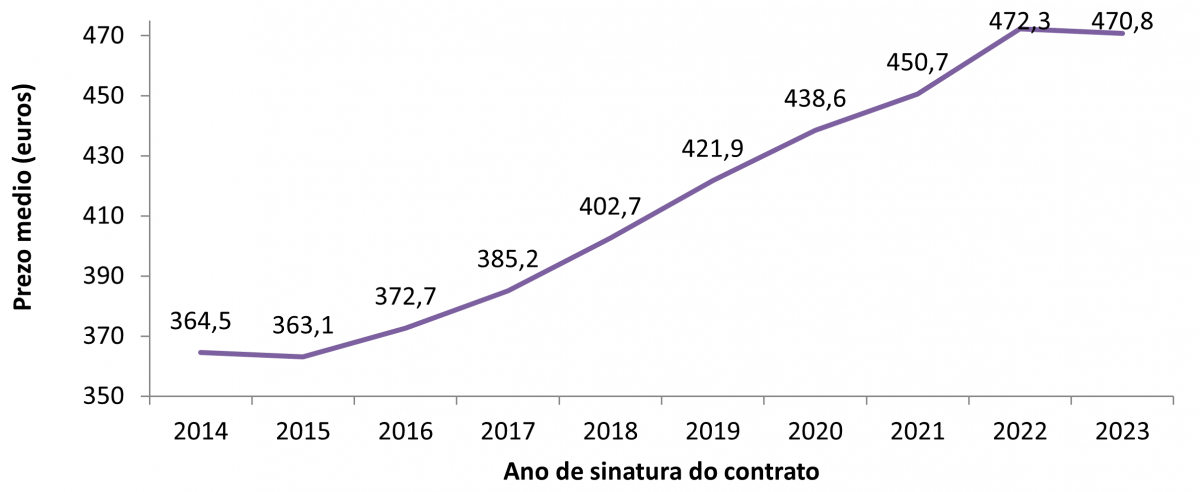Prezo dos alugueiros por anos (2014-2023*)