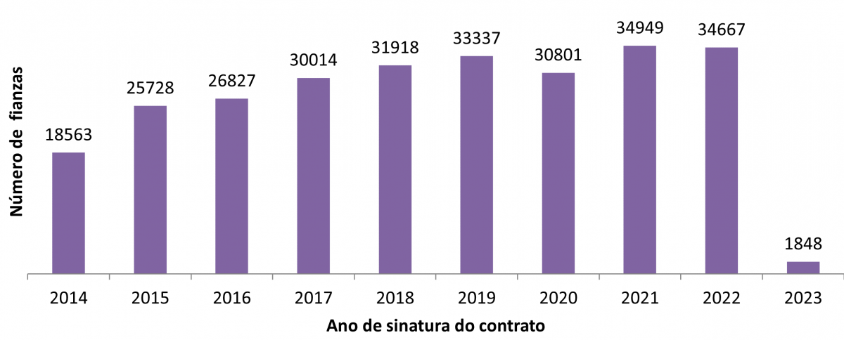 Número de contratos de alugueiro por anos (2014-2023*)