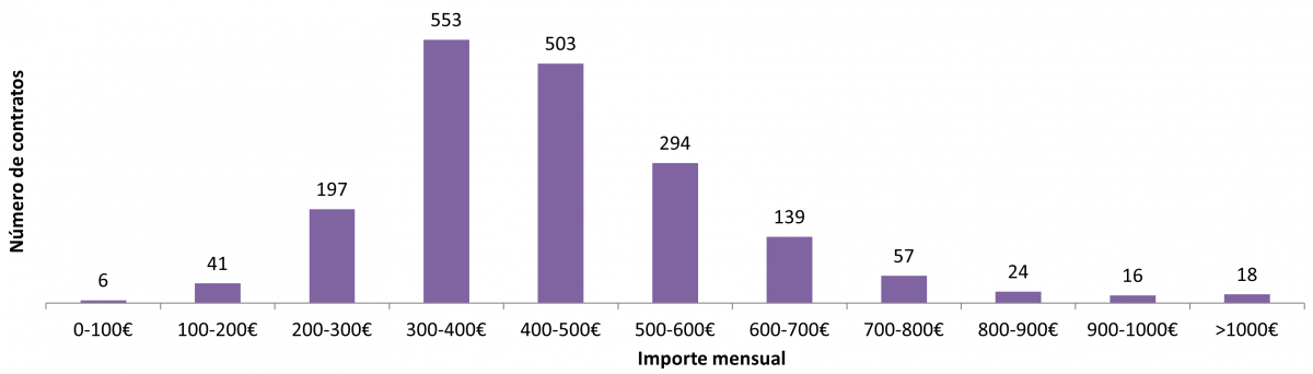 Nº de contratos en función do importe mensual