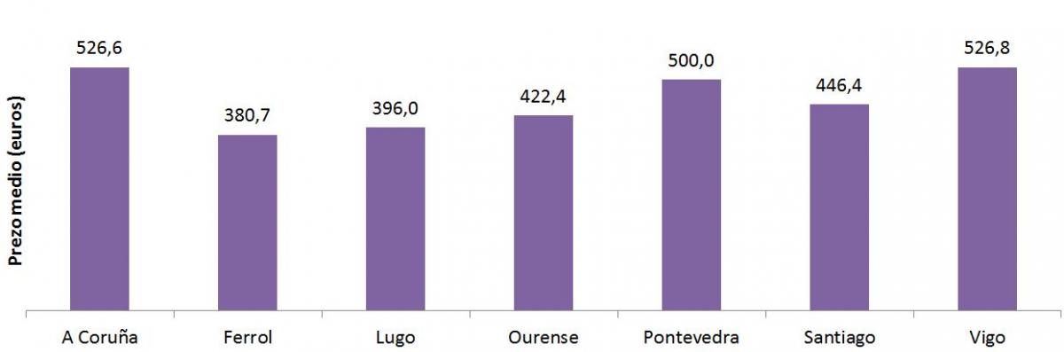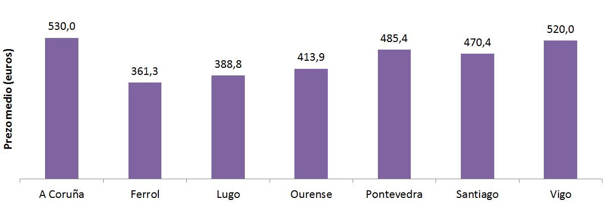Prezo dos alugueiros no ano 2020 nos sete grandes concellos