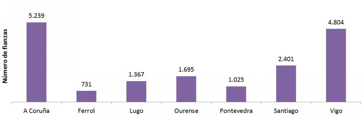 Cidades Nº de fianzas Importe medio (€) Nº de fianzas Importe medio (€) Nº de fianzas Importe medio (€) Nº de fianzas Importe medio (€) Nº de fianzas Importe medio (€) Nº de fianzas Importe medio (€)