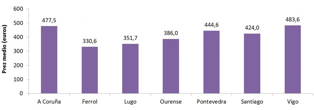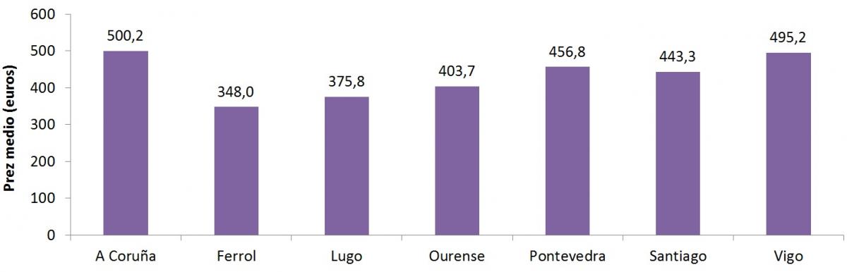 Prezo dos alugueiros no ano 2018 nos sete grandes concellos