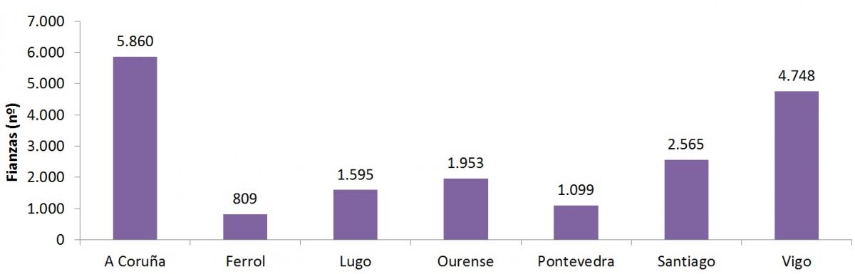 Cidades Nº de fianzas (2018) Importe medio (€)