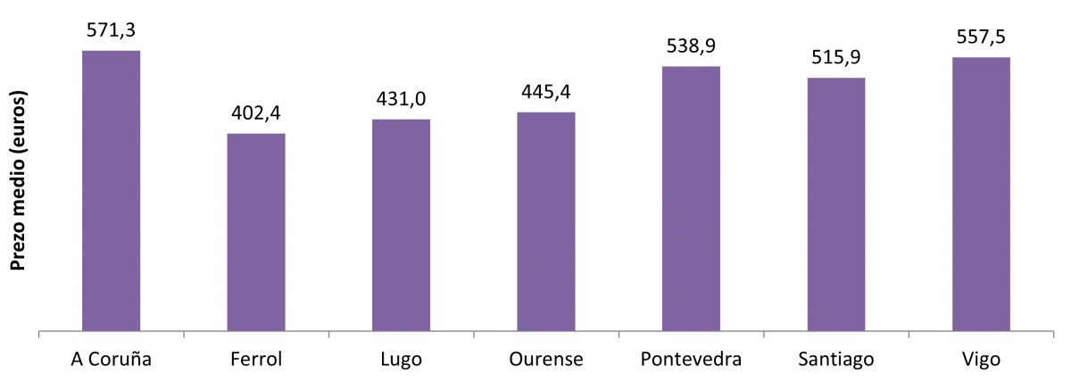 Prezo dos alugueiros no ano 2021 nos sete grandes concellos