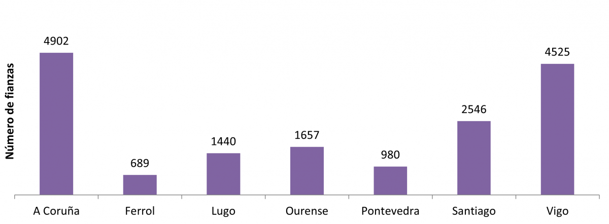 Cidades Nº de fianzas Importe medio (€) Nº de fianzas Importe medio (€) Nº de fianzas Importe medio (€) Nº de fianzas Importe medio (€) Nº de fianzas Importe medio (€) Nº de fianzas Importe medio (€) Nº de fianzas Importe medio (€)