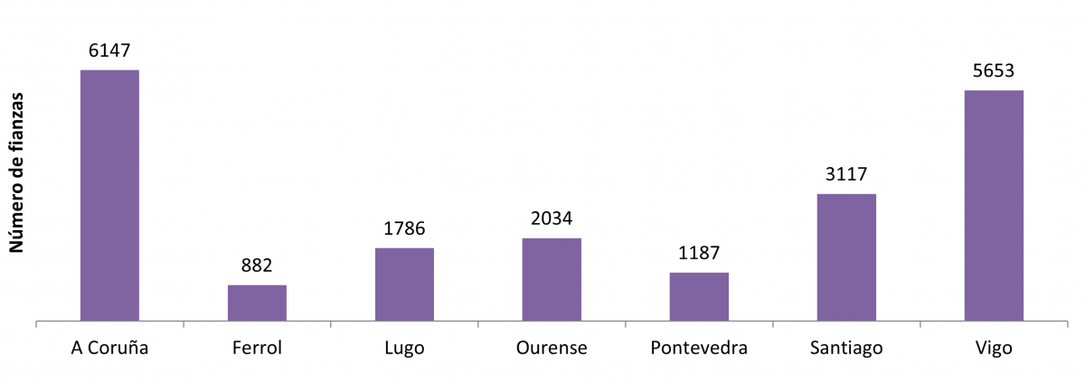 Cidades Nº de fianzas Importe medio (€) Nº de fianzas Importe medio (€) Nº de fianzas Importe medio (€) Nº de fianzas Importe medio (€) Nº de fianzas Importe medio (€) Nº de fianzas Importe medio (€) Nº de fianzas Importe medio (€)