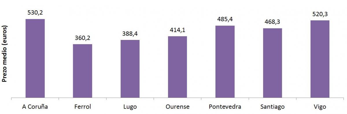 Prezo dos alugueiros no ano 2020 nos sete grandes concellos