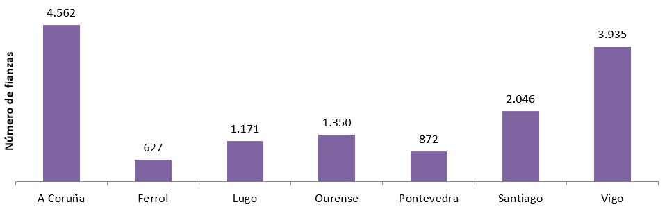 Cidades Nº de fianzas Importe medio (€) Nº de fianzas Importe medio (€) Nº de fianzas Importe medio (€) Nº de fianzas Importe medio (€) Nº de fianzas Importe medio (€) Nº de fianzas Importe medio (€)