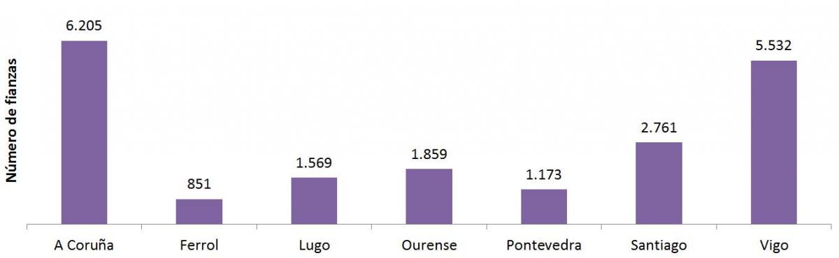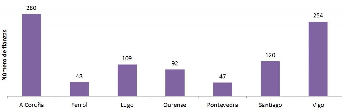 Cidades Nº de fianzas Importe medio (€) Nº de fianzas Importe medio (€) Nº de fianzas Importe medio (€) Nº de fianzas Importe medio (€) Nº de fianzas Importe medio (€) Nº de fianzas Importe medio (€) Nº de fianzas Importe medio (€)