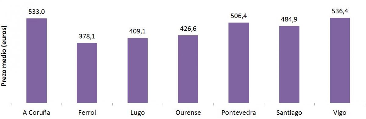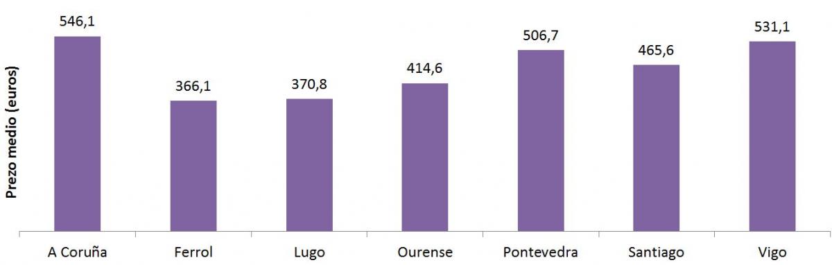 Prezo dos alugueiros no ano 2021 nos sete grandes concellos