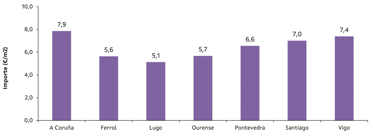 Prezo por metro cadrado dos alugueiros no ano 2024 nos sete grandes concellos