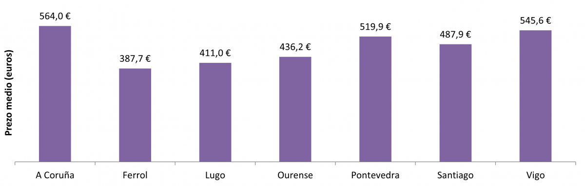 Prezo dos alugueiros no ano 2021 nos sete grandes concellos