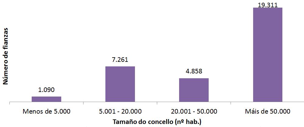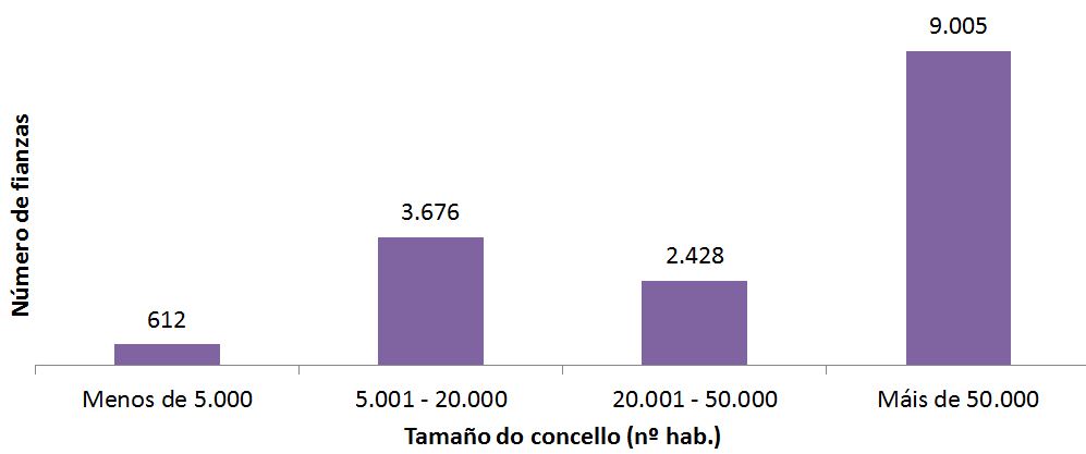 Tamaño do concello (habitantes) Nº de concellos Nº de fianzas Importe medio (€)