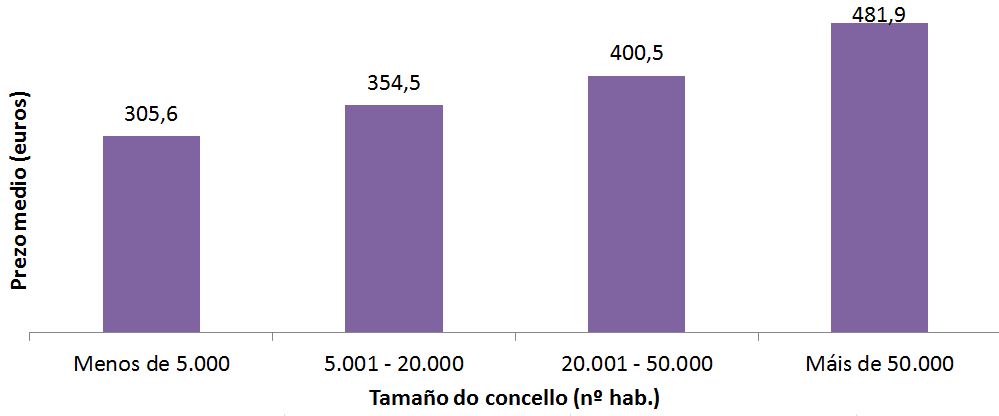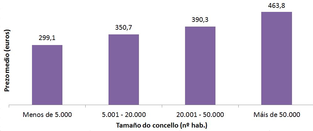 Prezo do alugueiro no ano 2020 por tamaño de concello