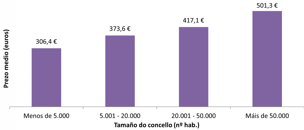 Prezo do alugueiro no ano 2022* por tamaño de concello