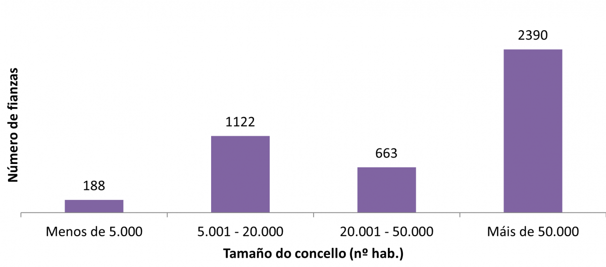 Número e importe medio das fianzas depositadas dos contratos asinados en 2023 nos concellos