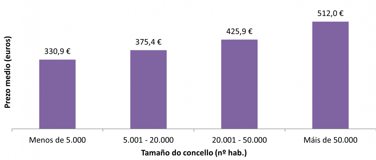 Prezo do alugueiro no ano 2022 por tamaño de concello