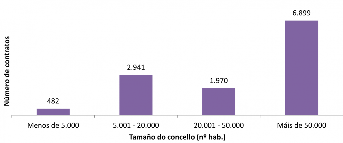 Número de contratos de alugueiro no ano 2021 por tamaño de concello