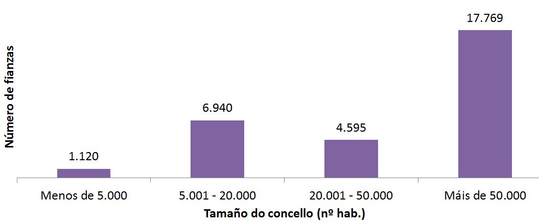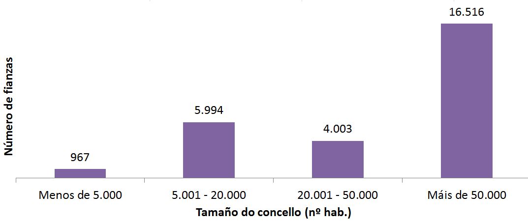 Tamaño do concello (habitantes) Nº de concellos Nº de fianzas Importe medio (€)