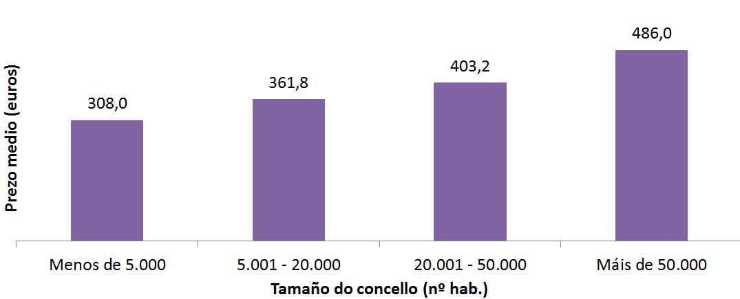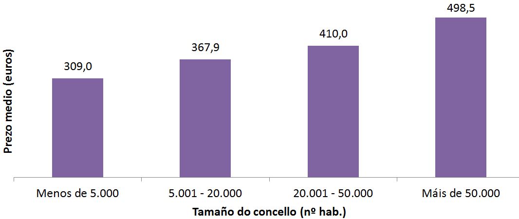 Prezo do alugueiro no ano 2021* por tamaño de concello
