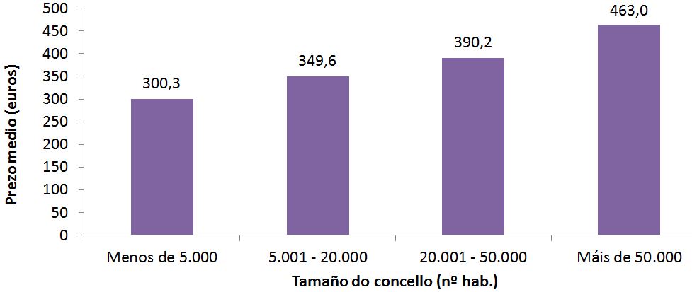 Prezo do alugueiro no ano 2020 por tamaño de concello