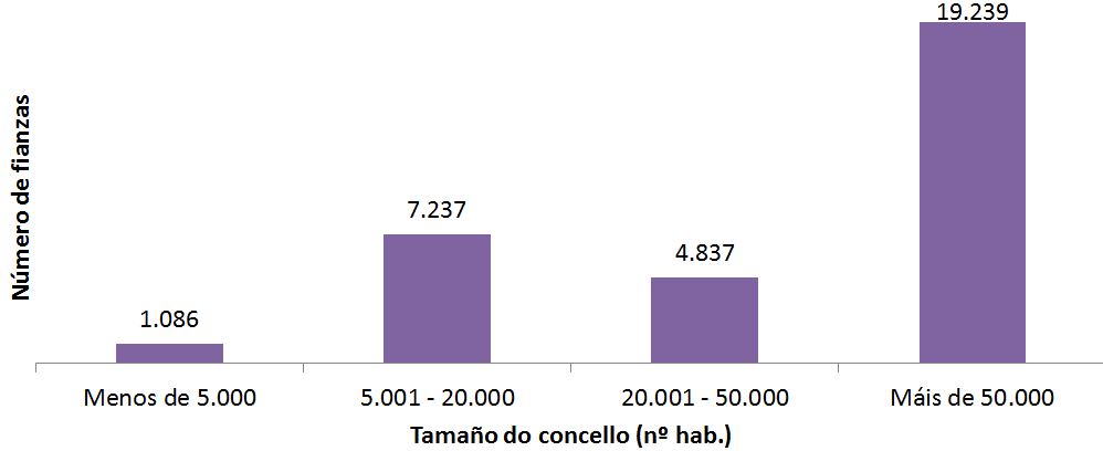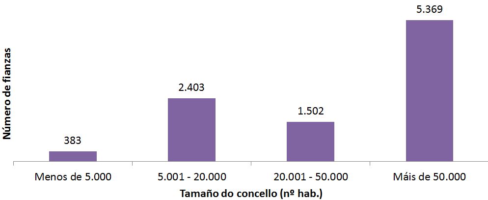 Tamaño do concello (habitantes) Nº de concellos Nº de fianzas Importe medio (€)