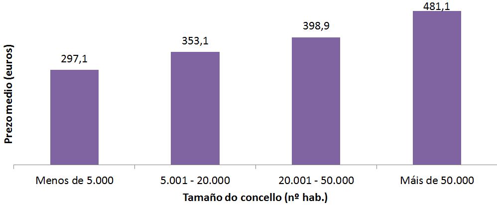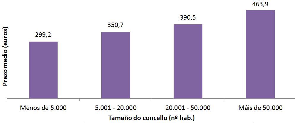 Prezo do alugueiro no ano 2020 por tamaño de concello